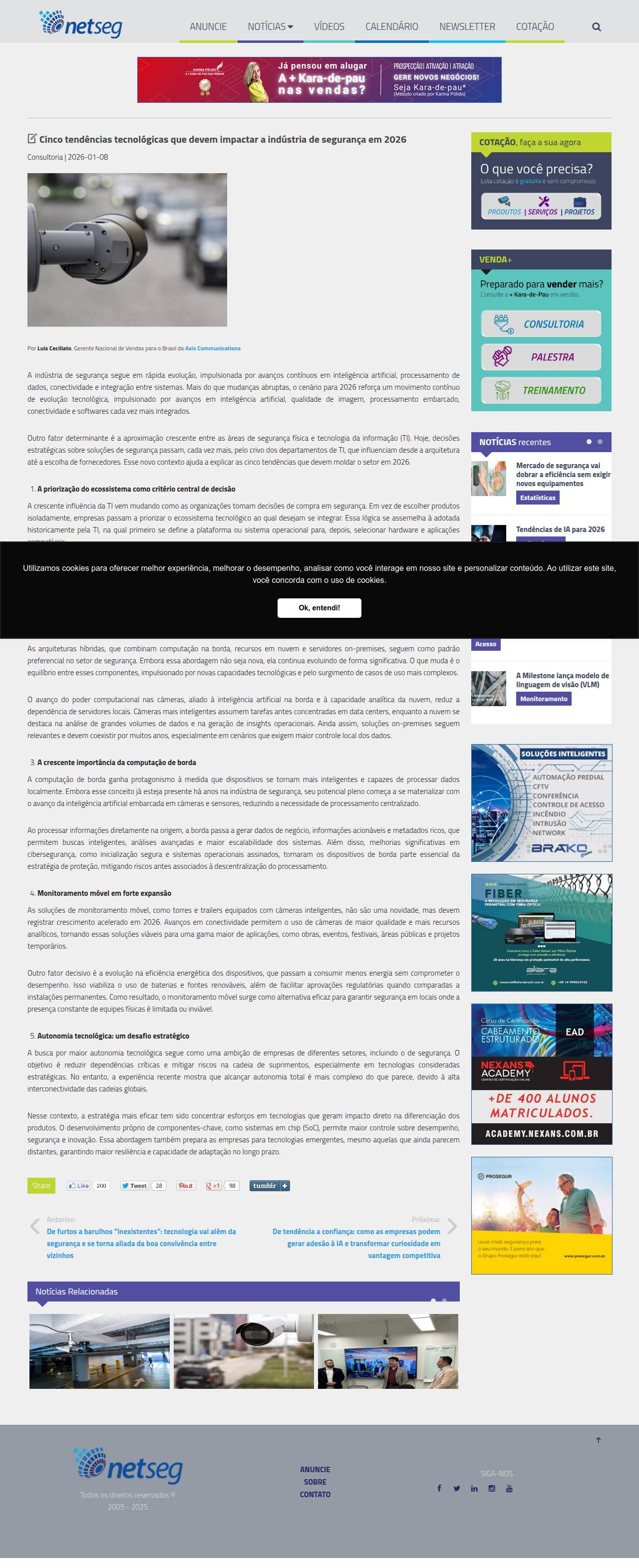 Cinco tendências tecnológicas que devem impactar a indústria de segurança em 2026