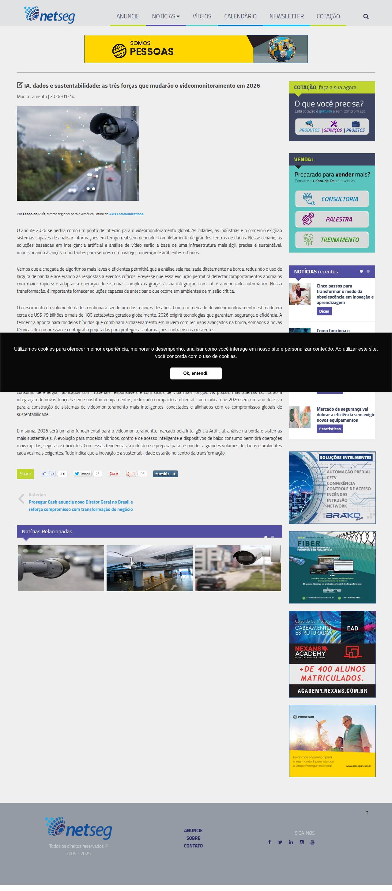 IA, dados e sustentabilidade: as três forças que mudarão o videomonitoramento em 2026