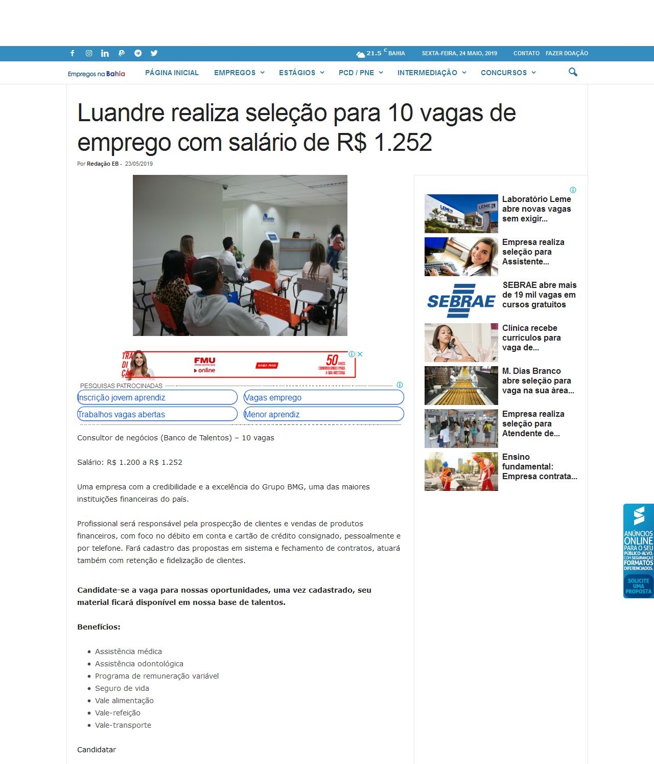 24/05/2019 - Empregos na Bahia