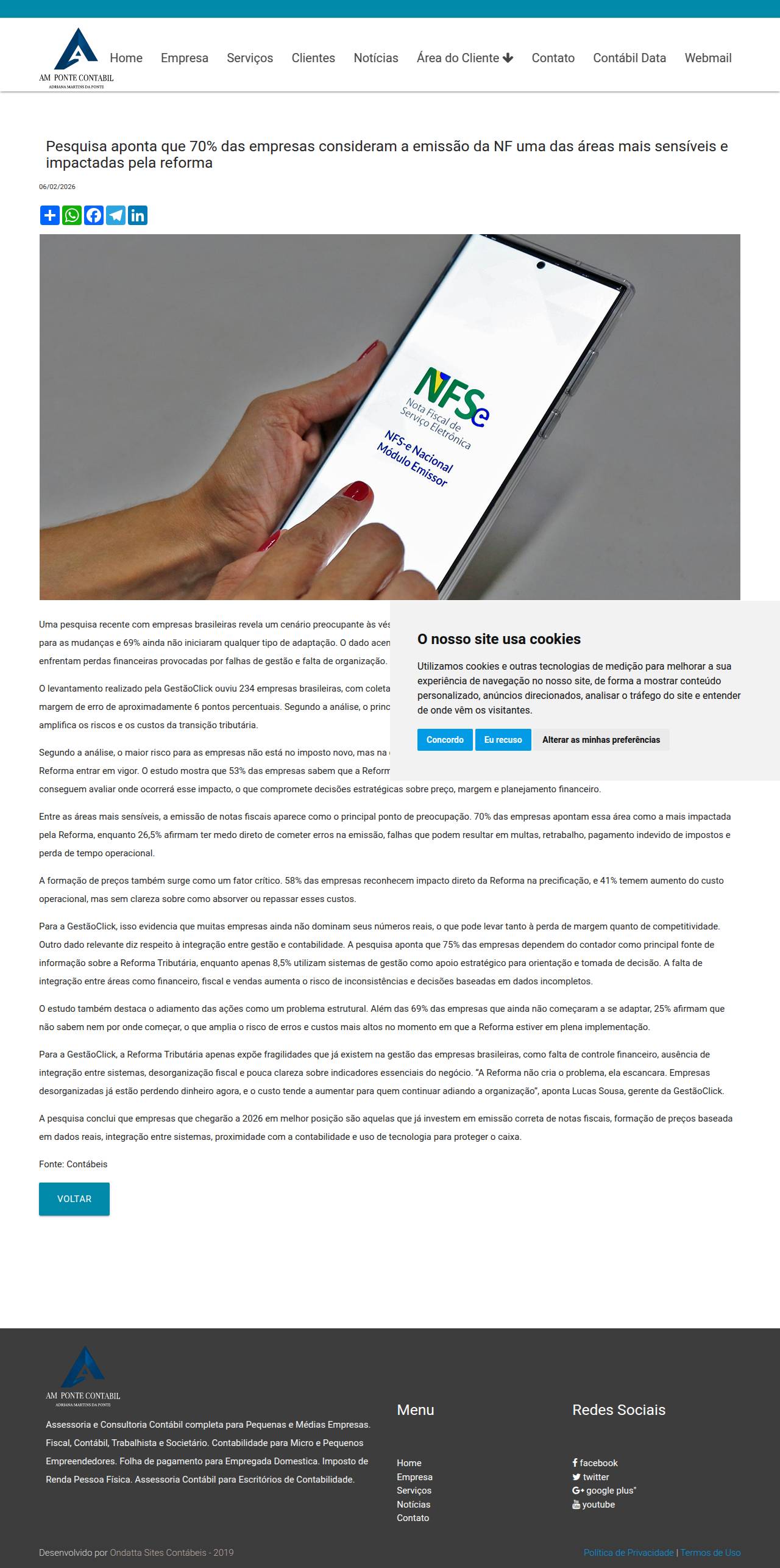 https://www.ampontecontabil.com.br/noticias/contabil/pesquisa-aponta-que-70-das-empresas-consideram-a-emissao-da-nf-uma-das-areas-mais-sensiveis-e-impactadas-pela-reforma/4dbee971-f776-41d6-915c-c722032d2824