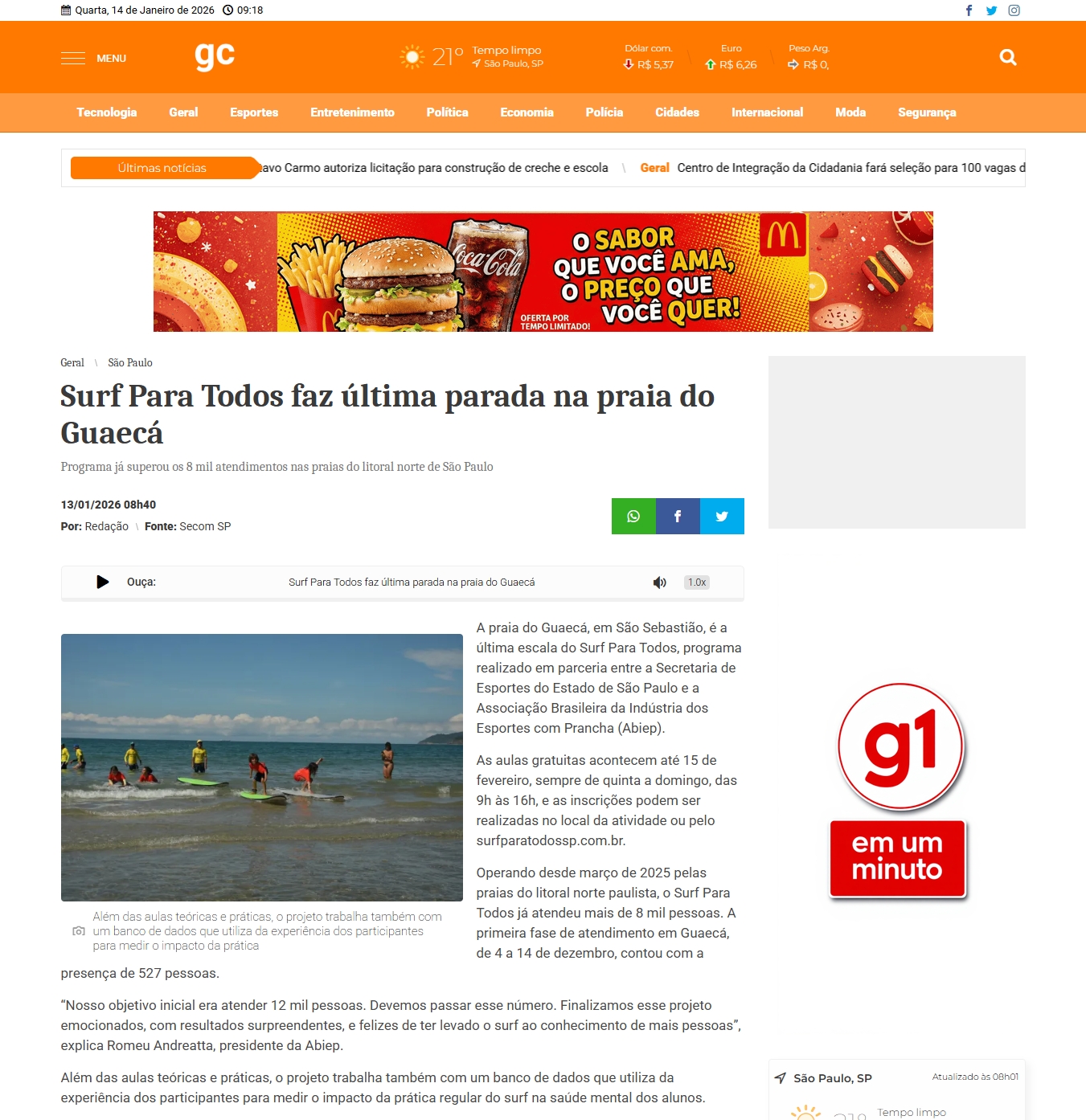 13/01/2026 - Portal Globo Cidade