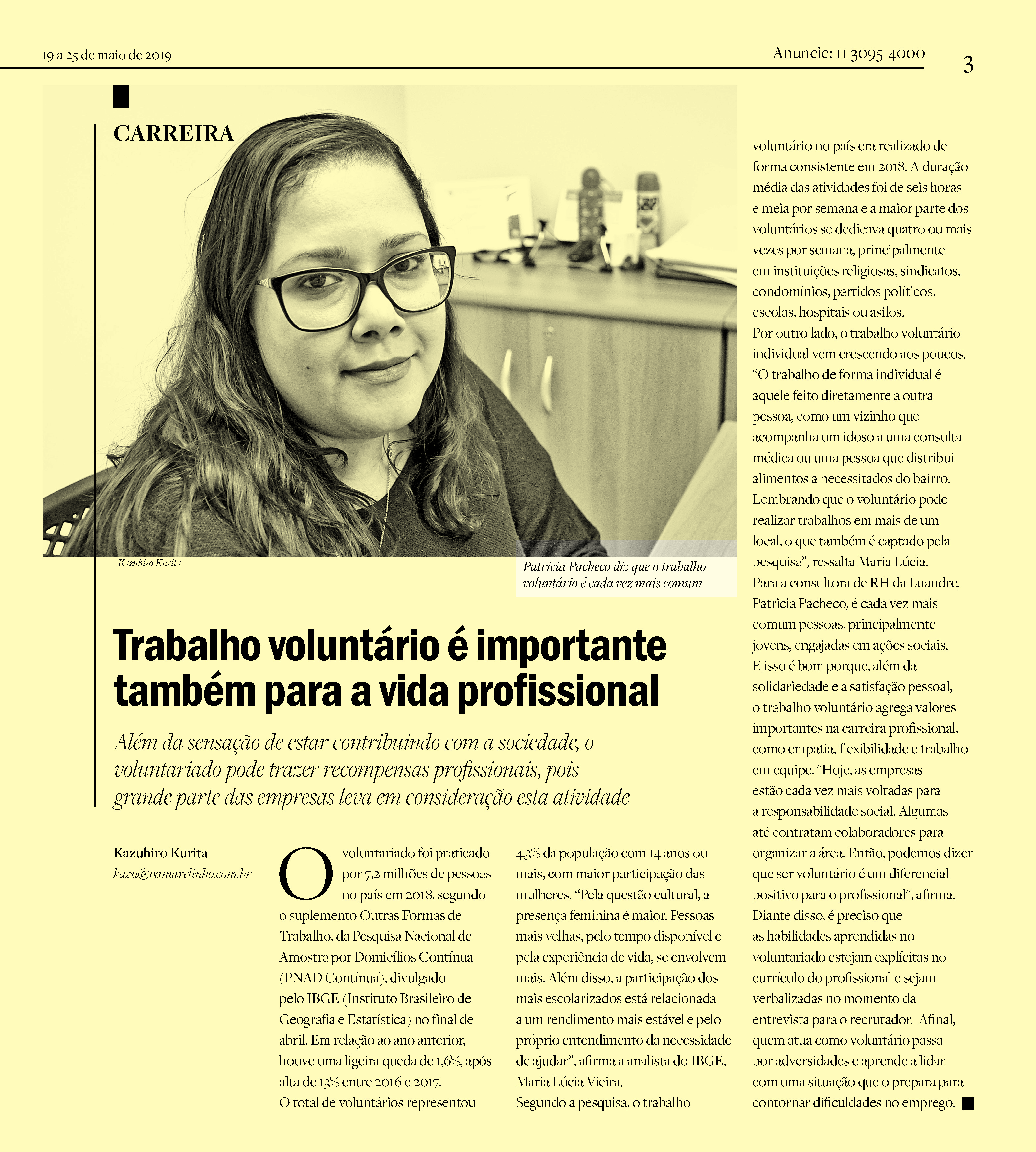 Trabalho voluntário é importante também para a vida profissional